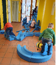 Es ist immer wieder schön diese tollen Elemente beim KSB auszuleihen! Eigenltich sollten die blauen Steine für 3 Wochen bei uns im Kindergarten bleiben. Aufgrund der Notgruppen-Situation haben wir die Bewegungsbaustelle nun eine Woche. Wenn es wieder einen Regelbetrieb gibt, werden die Elemente erneut ausgeliehen. So haben dann auch alle Kinder die Möglichkeit damit zu toben, bauen und zu experimentieren.