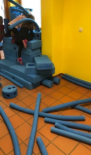 Der Kreativität sind keine Grenzen gesetzt. Es wurden u.a. ein Feuerwehrauto und eine Wassermurmelbahn mit den Bauelementen gebaut. Aber auch darüber geklettert, balanciert und gesprungen.
