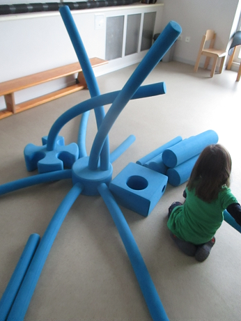 Im Februar können sich unsere Kinder über große blaue Bauelemente im Mehrzweckraum freuen. Die Bewegungsbaustelle haben wir uns für 2 Wochen ausgeliehen. Mit den Elementen können die Kinder ihrer Fantasie freien lauf lassen und großartige Dinge bauen – egal ob Häuser, Straßen, Tunnel, Treppen, Höhlen etc. Desweitern können vielfältige Bewegungslandschaften zum Balancieren, Laufen, Krabbeln, Springen, Klettern und Toben aufgebaut werden.