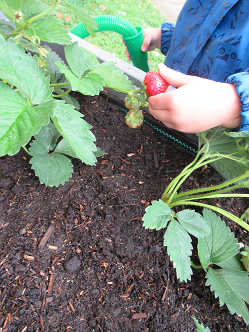 Als erste kleine Aktion im neuen Kindergartenjahr haben die Blümchenkinder ihr Hochbeet neu bepflanzt. Die Freude war groß als, nach einigen Tagen schon die erste Erdbeere geerntet werden konnte!