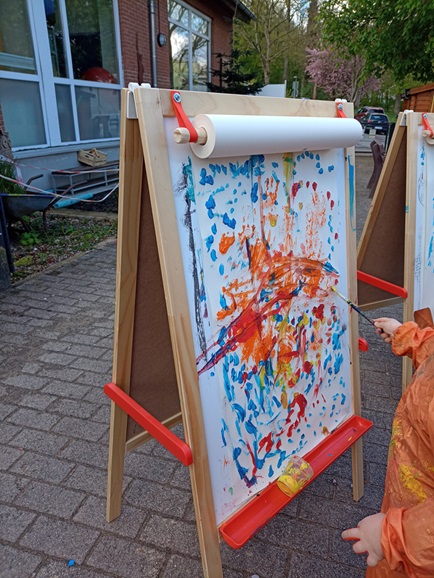 Unsere U3 Kinder haben auf dem Außengelände an der Staffelei gemalt.