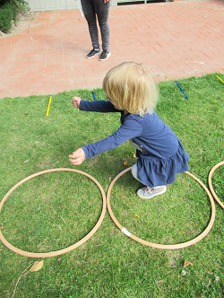 Die Kinder durften in Gruppen zu 4 oder 5 Kindern die einzelnen Stationen unserer kleinen Olympischen-Spiele durchlaufen. Neben dem Zielwerfen, konnten sich die Kinder im Hüpfpferderennen probieren, den Gummistiefelweitwurf erproben und eine gemeinsame Hindernis-Staffel durchlaufen. Bei der Siegerehrung freuten sich alle über eine Medaille.